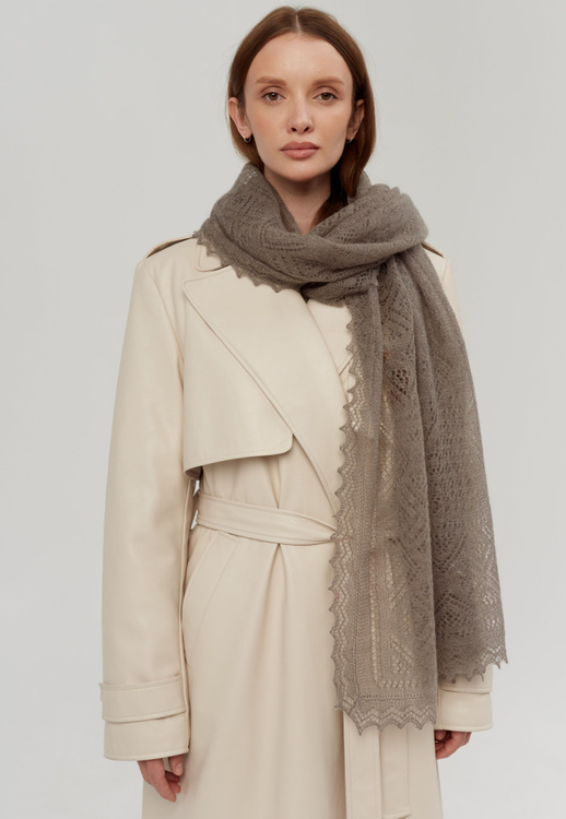 Ажурный пуховый палантин - невероятно легкий, модный и элегантный - создает ощущение нежного прикосновения, теплоты и уюта. Связан из белого или серого отборного козьего пуха высокого.